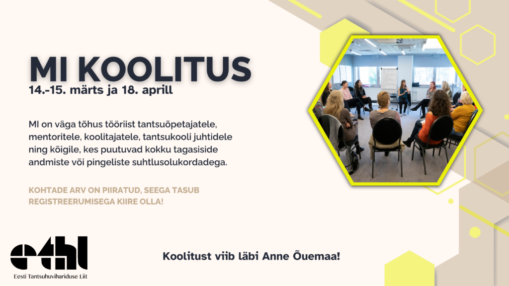 MI on väga tõhus tööriist tantsuõpetajatele, mentoritele, koolitajatele, tantsukooli juhtidele ning kõigile, kes puutuvad kokku tagasiside andmiste või pingeliste suhtlusolukordadega.
